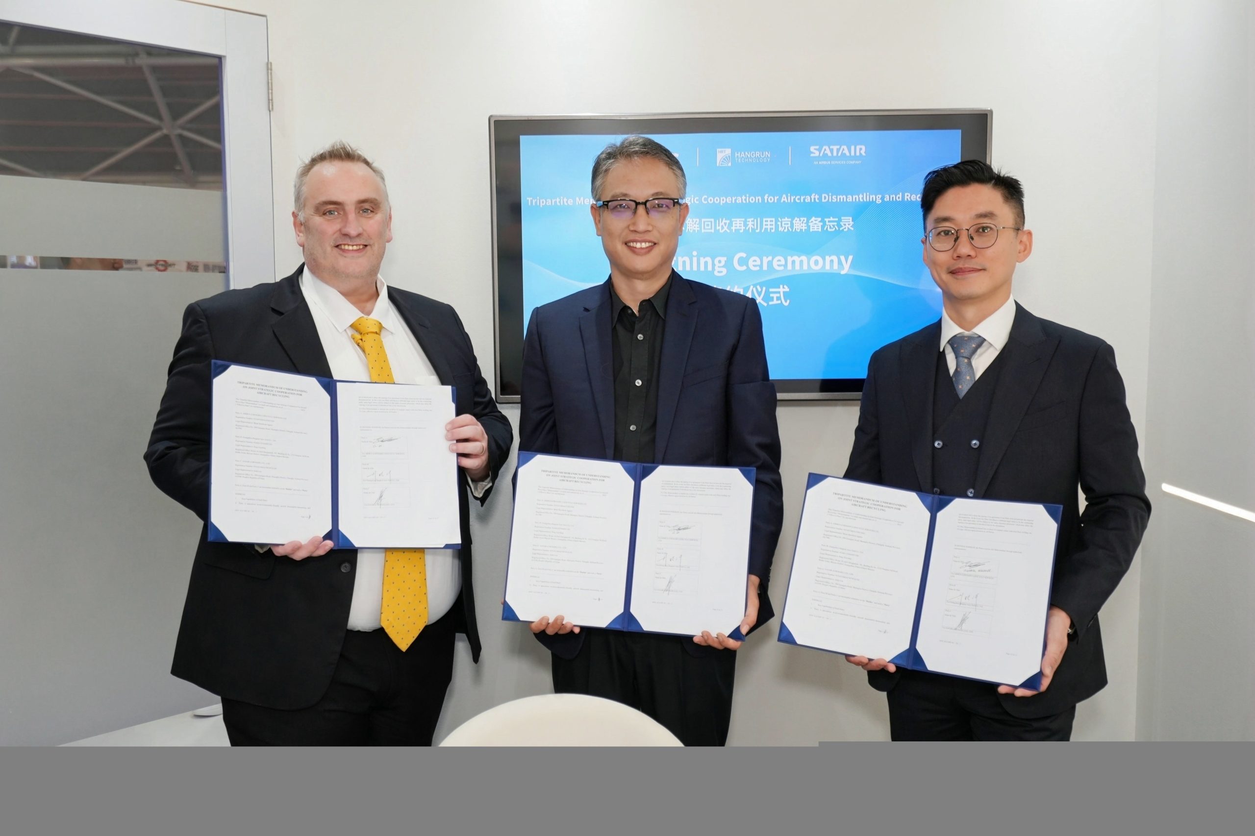 Satair, an Airbus Services company, Airbus (Chengdu) Lifecycle Services Ltd. (ALS), and Guangzhou Hangrun Technology Co., Ltd. (Hangrun Technology) have signed a Tripartite Memorandum of Understanding (MoU) for joint strategic cooperation. This non-binding agreement outlines a five-year collaboration for aircraft end-of-life solutions. The partnership aims to provide a comprehensive, one-stop service for aircraft dismantling and the distribution of Used Serviceable Material (USM).